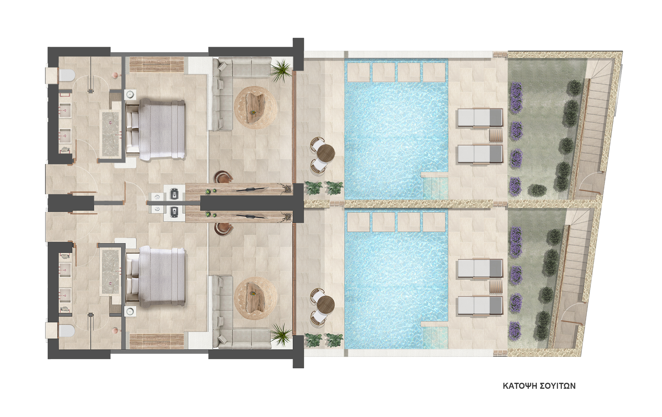 Created for families who appreciate space and privacy, the Family Garden View Pool Suite blends timeless Zakynthian architecture with relaxed contemporary living. Sunlit interiors open onto a private garden and pool, encouraging effortless days together, where comfort, calm surroundings, and thoughtful design shape a truly memorable island stay together.